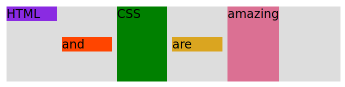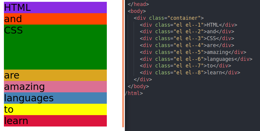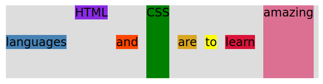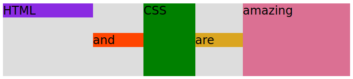 You can even set different growth sizes, and flex will even it out. After taking out the order and shortening the sentence to “HTML and CSS are amazing”.