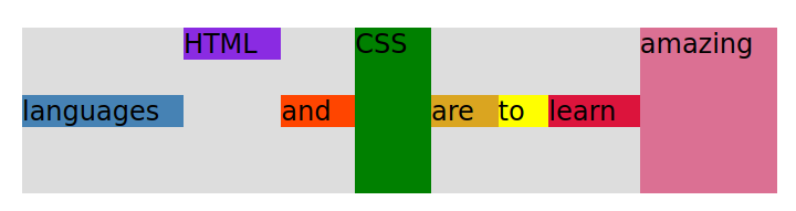 | flex-grow: 2; | would have double the extra space after the word “HTML” and amazing compared to the other words. |
